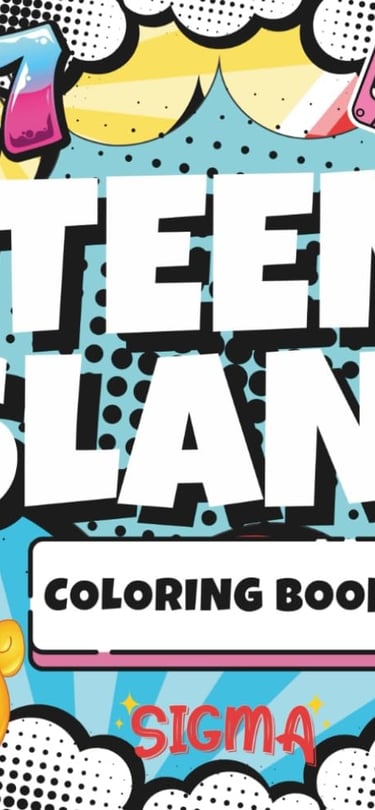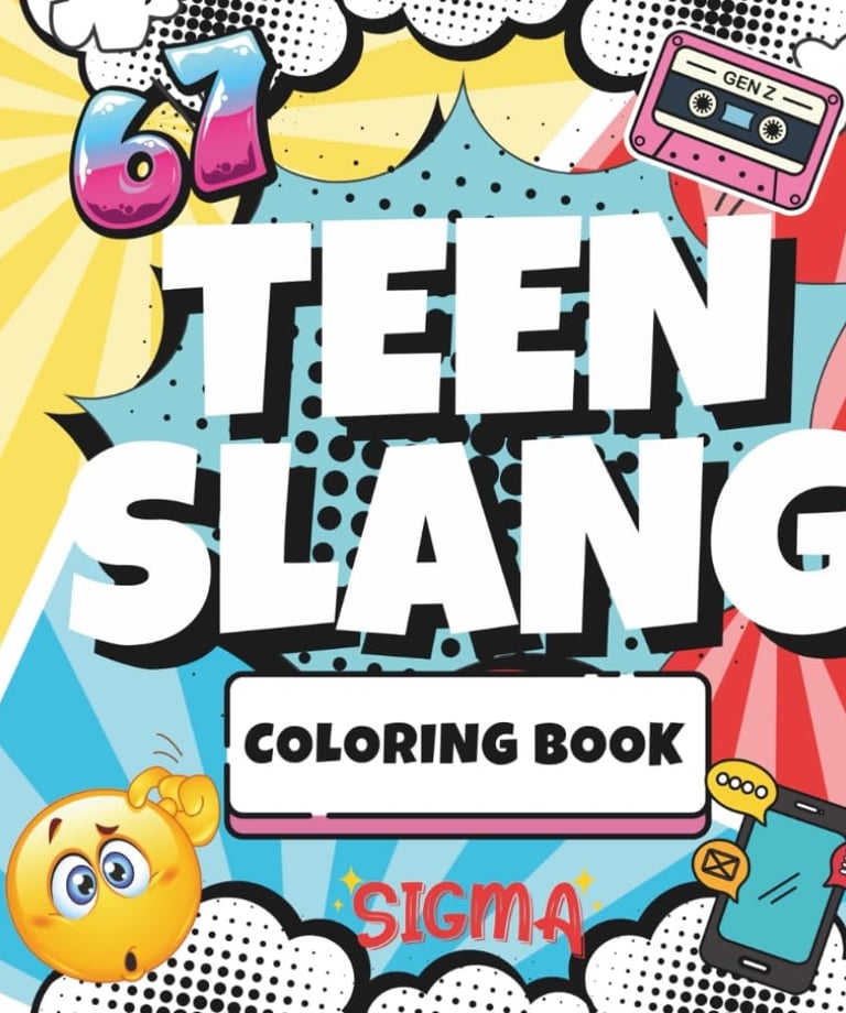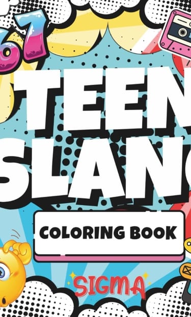 Funny, bold coloring pages explaining chaotic teen slang every bewildered adult should know.